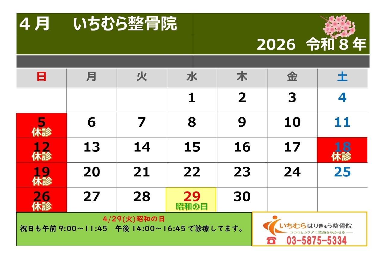 4月のお休みは